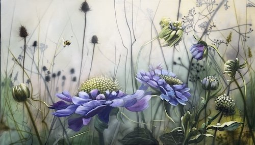 "Scabiosa" 80x140cm maleri af Naja Duarte