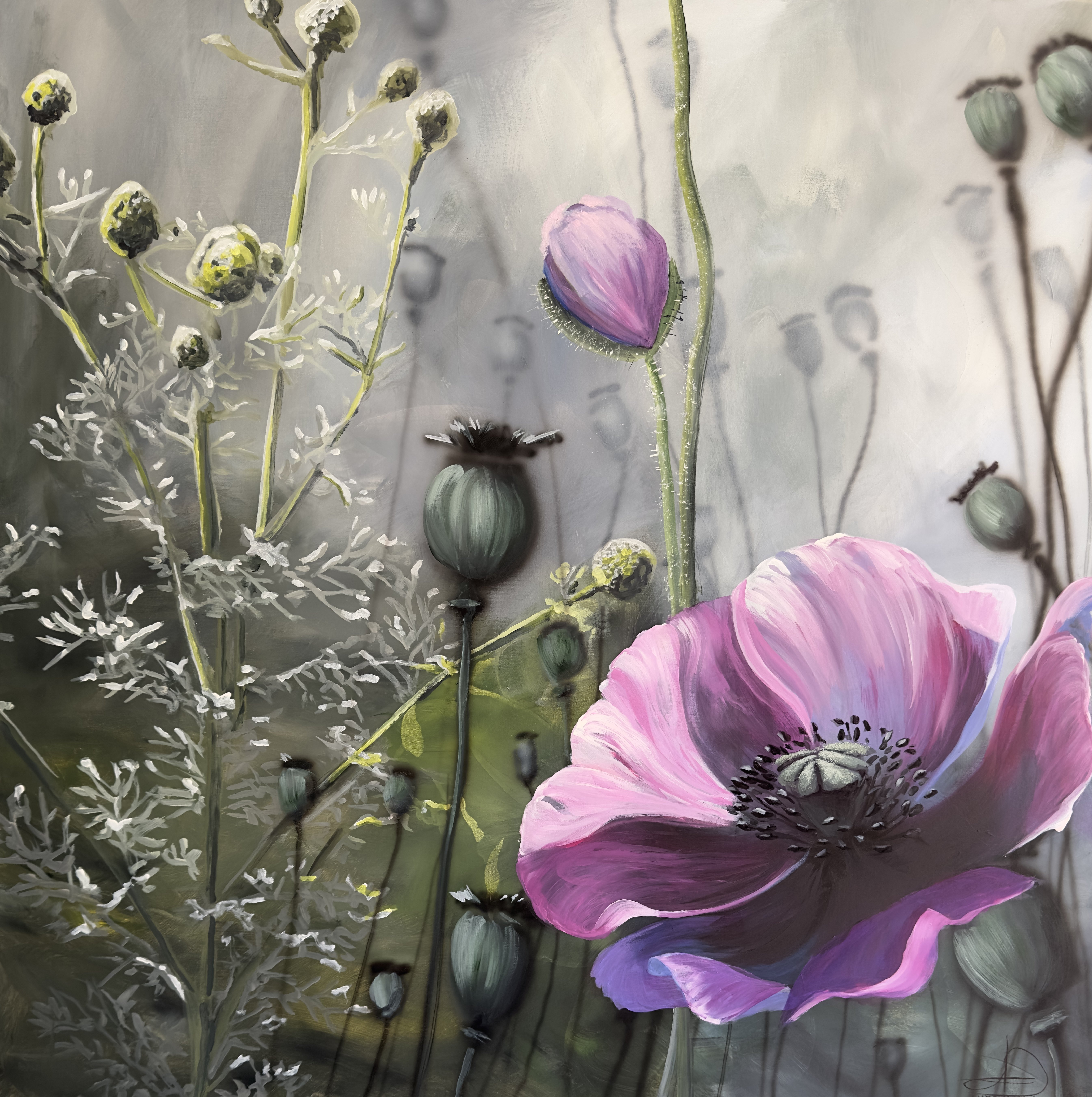 "Cyklus" 100x100cm maleri af Naja Duart