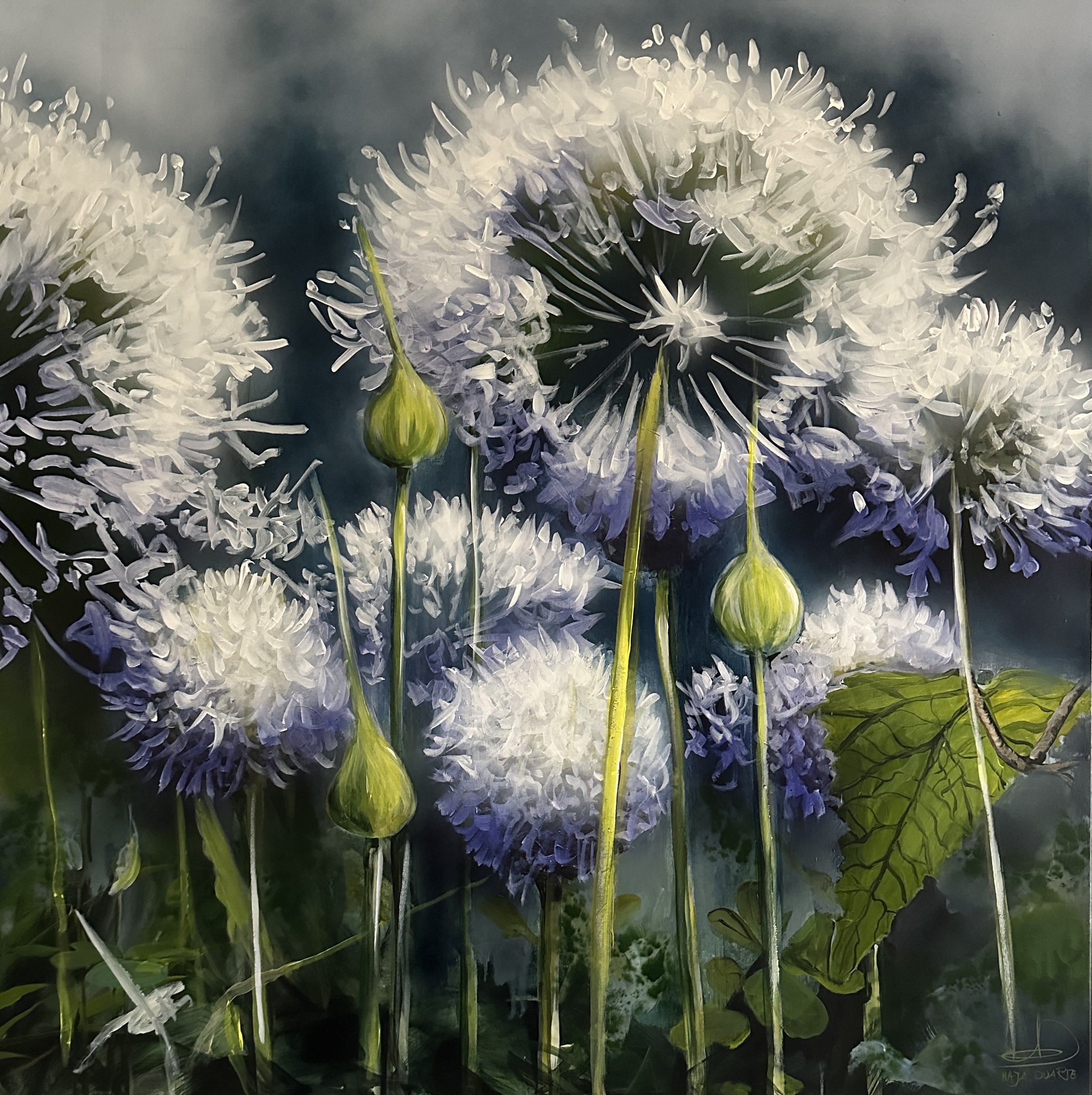 "Hvide kæmpe prydløg" 100x100cm maleri af Naja Duart