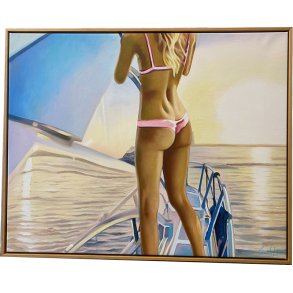 Malet med olie på lærred, indrammet i sort svæveramme.