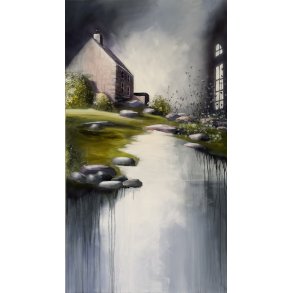 'Associationsrækkefølger visner i mørket" 90x120cm maleri af Anne Mette Harkes